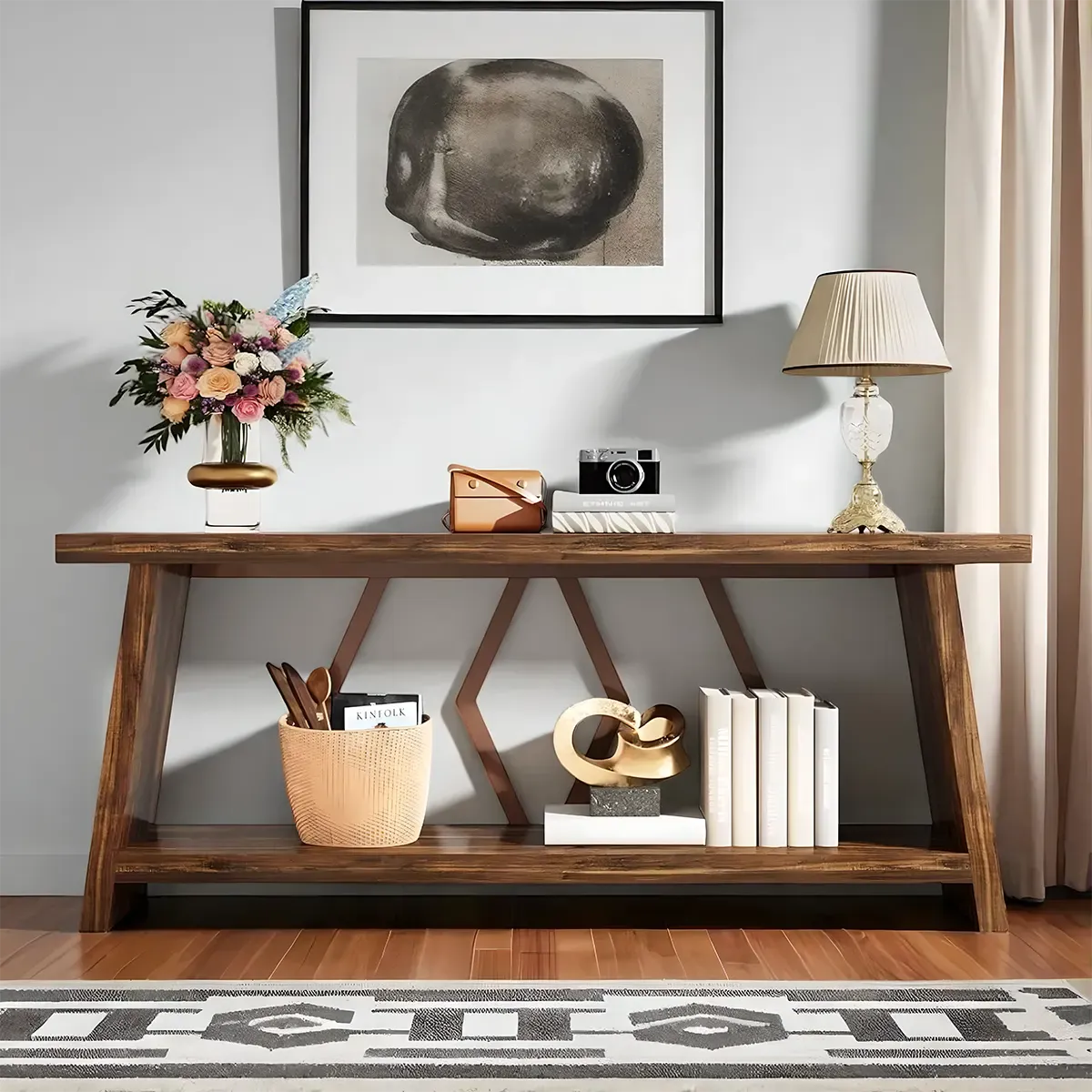 Zigzag Leg Solid Wood Console Table Modern Rustic Look