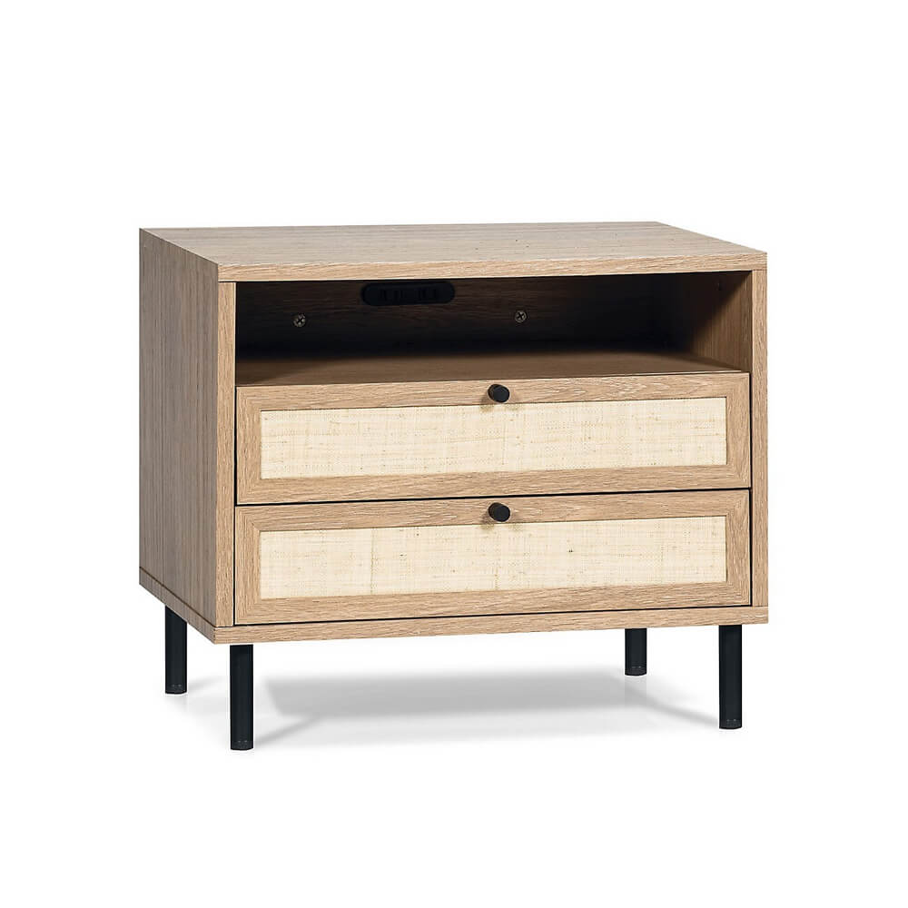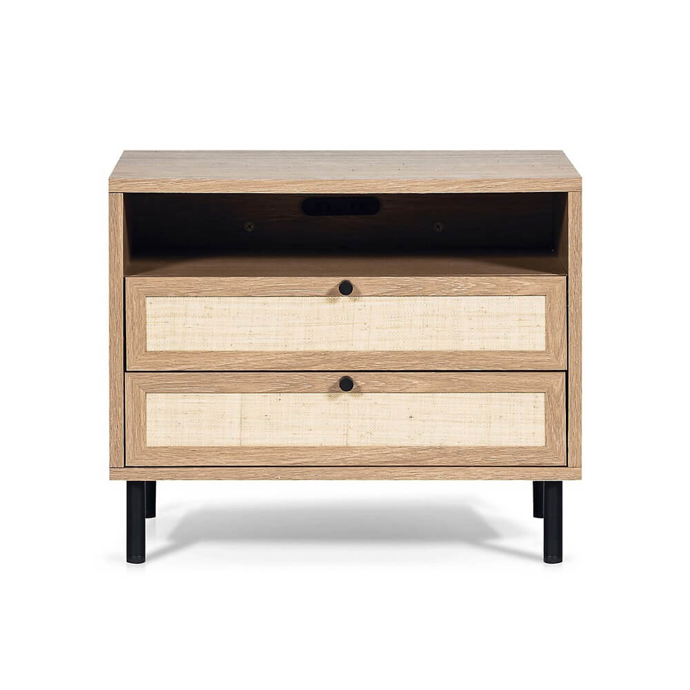 Natural wood, faux leather and a soft linen-like fabric combine in this elegant and warm accent chair. Featuring a pillowy back and a generous seat, Kenari packs good looks and comfort into one modern silhouette.